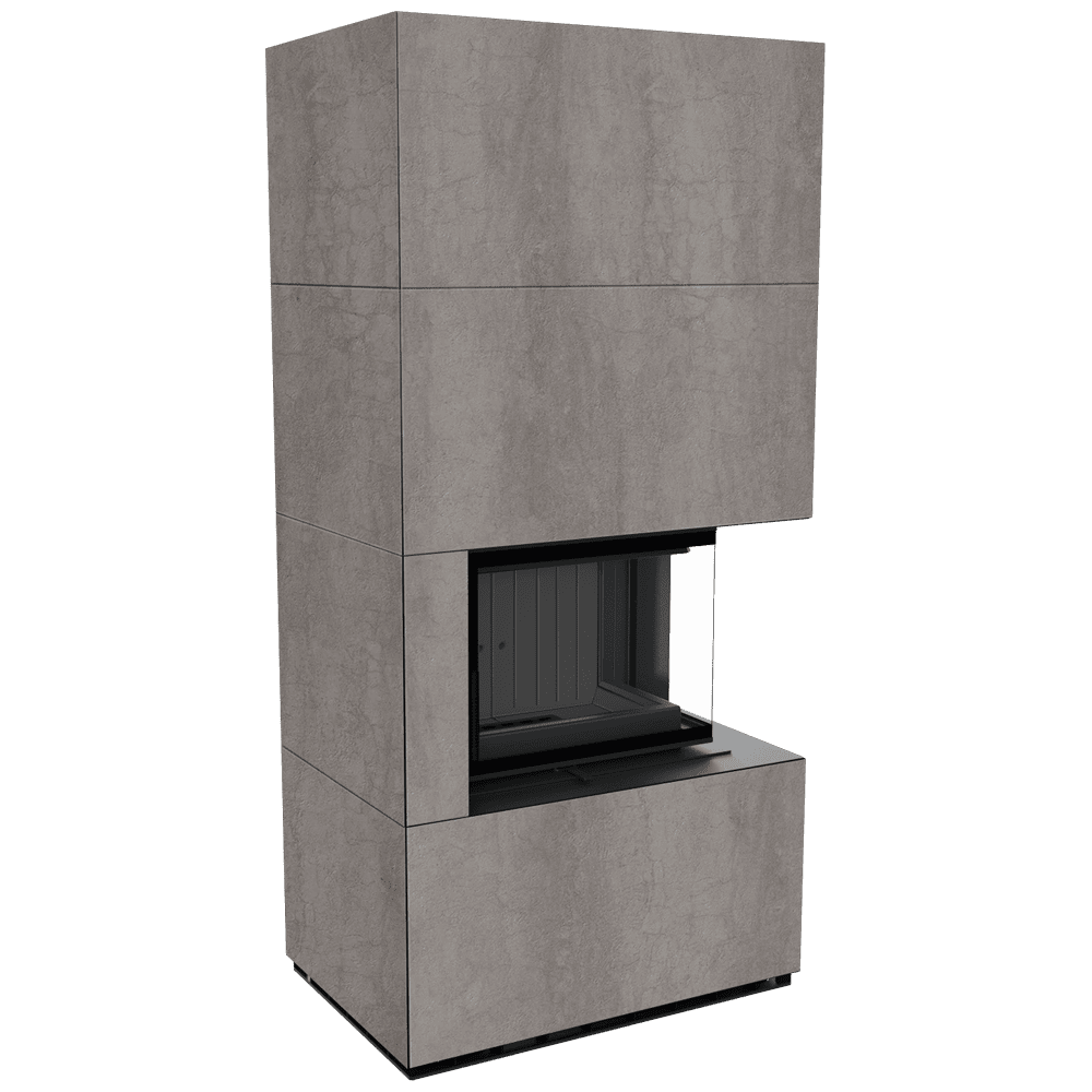 Модулна камина Kratki FLOKI/S/P/BLACK/Q/N/P/D/S/G Ø 160 8 kW, Синтерован кварц, Pietra di Savoia Grigia, ъглова дясна, black thermotec