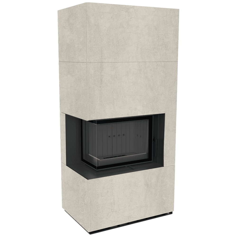 Модулна камина Kratki FLOKI/S/L/BLACK/Q/N/P/D/S/P Ø 160 8 kW, Синтерован кварц, Pietra Di Savoia Perla, ъглова лява, black thermotec