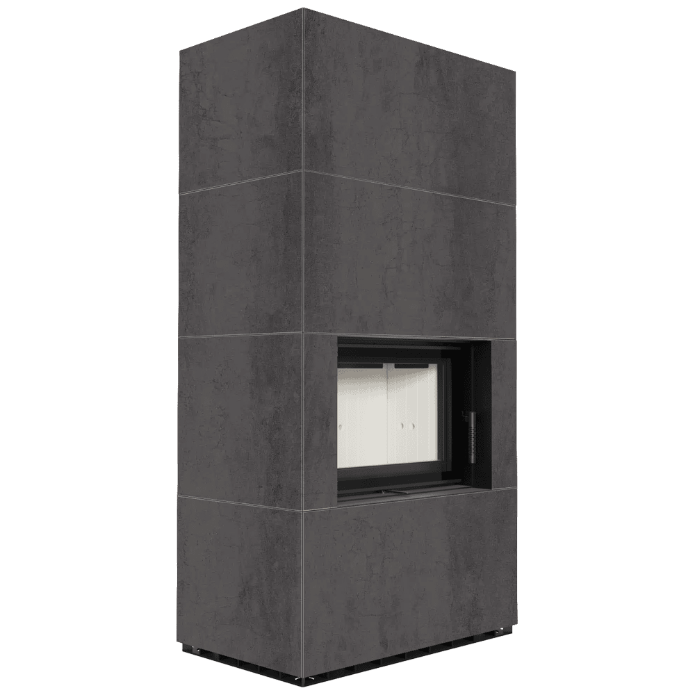 Модулна камина Kratki FLOKI/S/P/BLACK/Q/F/P Ø 160 8 kW, Синтерован кварц, Fokos Piombo, ъглова дясна, black thermotecСтоманен фронт с декоративно стъкло160ъглова дяснаFokos PiomboНе8Вход за въздух - вграден, Декоративно стъкло, Пепелник, Облицовка на горивната камераblack thermotec