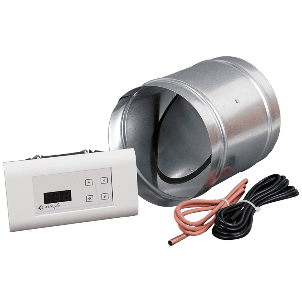 Комплектът MSK PLUS със 100 мм клапан е модерен контролер за камина с екран, който може да се използва с всички въздушни камини и с камини с водна риза.