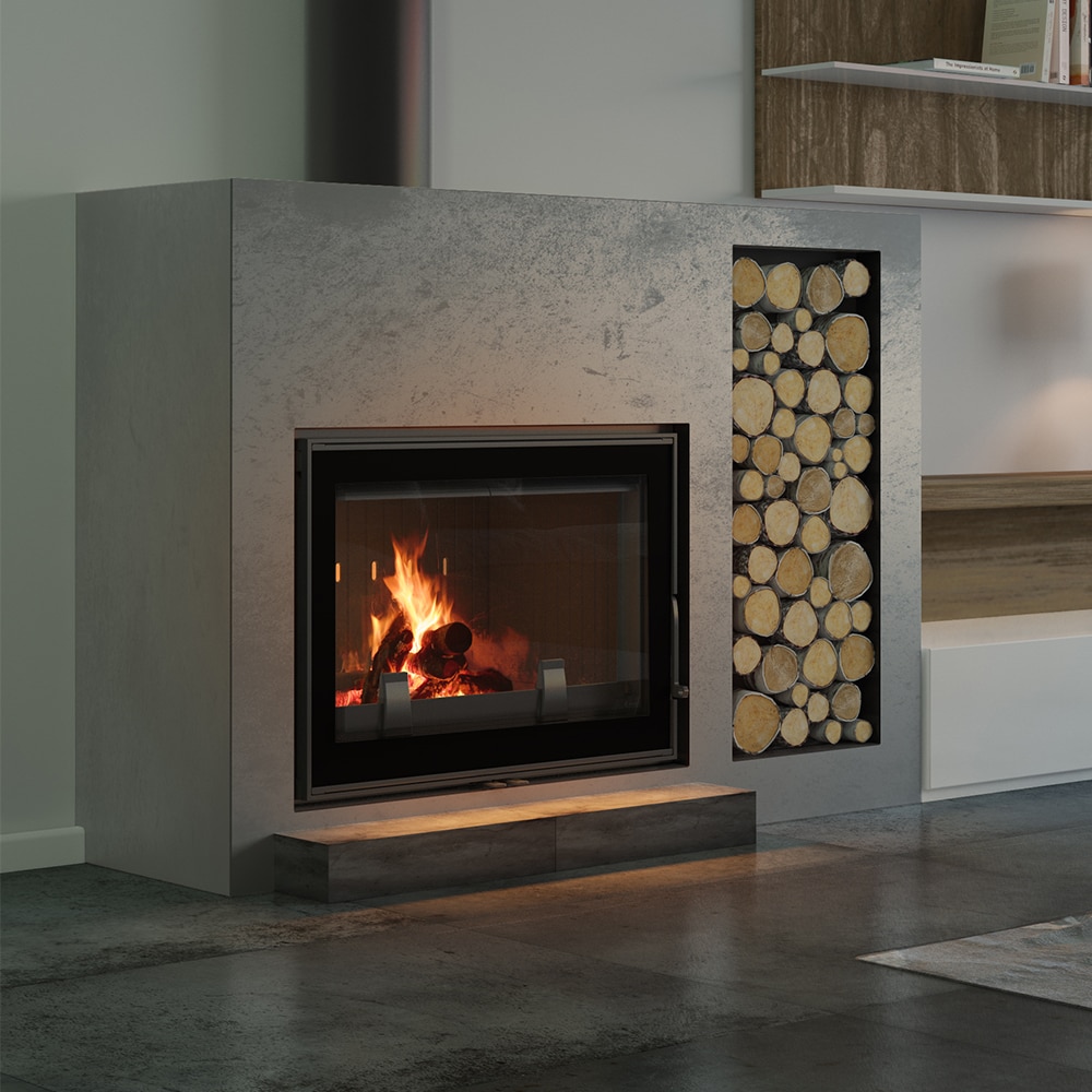 Тройна система за вентилация на горивната камера: първичен въздух се подава под решетката; вторичен въздух се подава през отвори в задната стена. Освен това, камината е оборудвана със система за чисто стъкло (въздушна завеса).