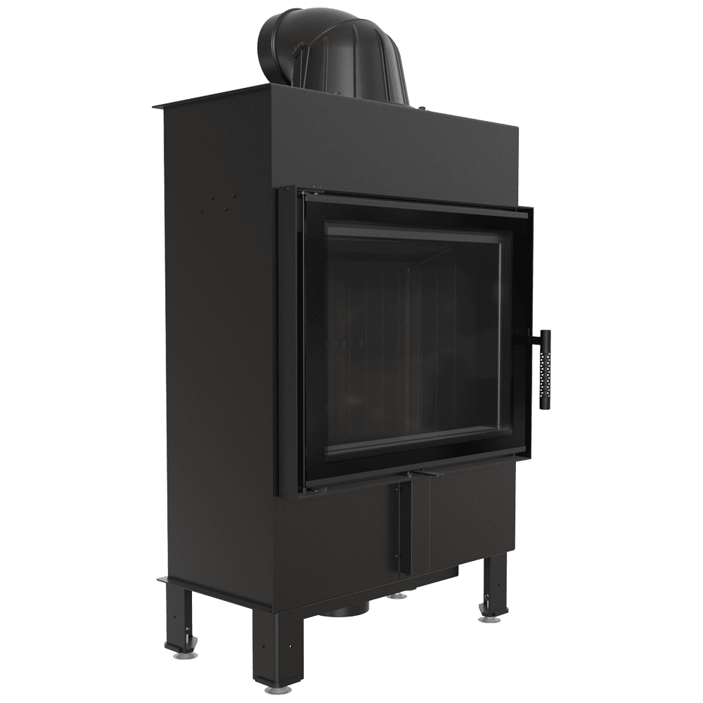Освен това, камината използва система за чисто стъкло (въздушна завеса), което означава, че въздухът се подава директно към стъклото през система от канали, разположени отстрани на камината. Това доставя кислород до горната част на горивната камера, където газовете, получени от горенето на дърва, се изгарят, което допълнително намалява вредните емисии на CO2 в атмосферата.