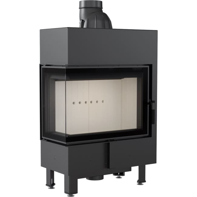Освен това, камината използва система за чисто стъкло (въздушна завеса), което означава, че въздухът се подава директно към стъклото през система от канали, разположени отстрани на камината. Това доставя кислород до горната част на горивната камера, където газовете, получени от горенето на дърва, се изгарят, което допълнително намалява вредните емисии на CO2 в атмосферата.
