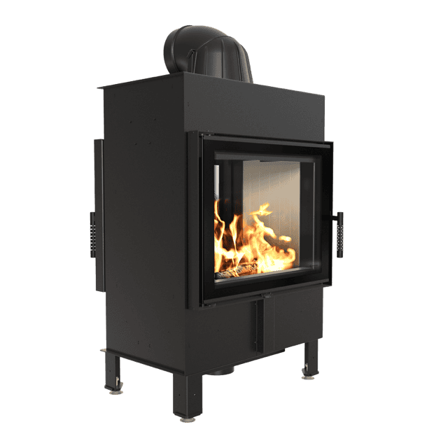 Освен това, камината използва система за чисто стъкло (въздушна завеса), което означава, че въздухът се подава директно към стъклото през система от канали, разположени отстрани на камината. Това доставя кислород до горната част на горивната камера, където газовете, получени от горенето на дърва, се изгарят, което допълнително намалява вредните емисии на CO2 в атмосферата.
