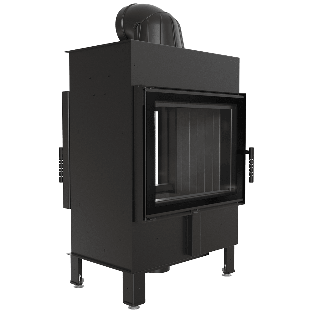 Освен това, камината използва система за чисто стъкло (въздушна завеса), което означава, че въздухът се подава директно към стъклото през система от канали, разположени отстрани на камината. Това доставя кислород до горната част на горивната камера, където газовете, получени от горенето на дърва, се изгарят, което допълнително намалява вредните емисии на CO2 в атмосферата.
