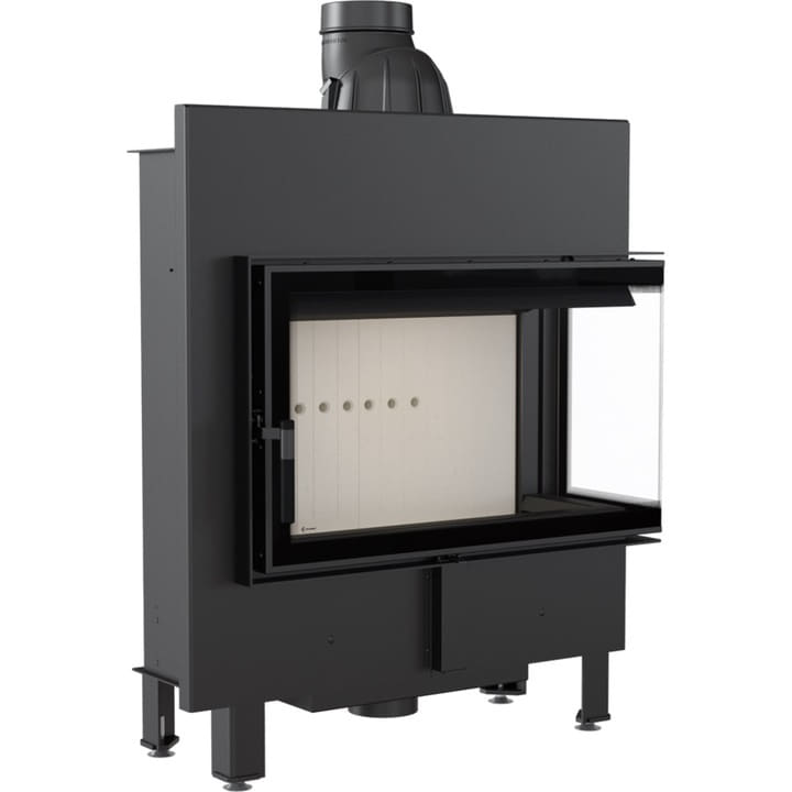 Освен това, камината използва система за чисто стъкло (въздушна завеса), което означава, че въздухът се подава директно към стъклото през система от канали, разположени отстрани на камината. Това доставя кислород до горната част на горивната камера, където газовете, получени от горенето на дърва, се изгарят, което допълнително намалява вредните емисии на CO2 в атмосферата.