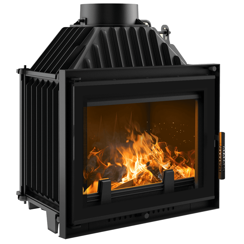 Дефлекторът удължава пътя на изгорелите газове, позволявайки изгарянето на горивните частици, значително увеличавайки ефективността на камината. Ръчното регулиране на тягата на комина се постига с помощта на вградената клапа. Освен това, ръчното управление на пепелника позволява още по-добро управление на горенето.