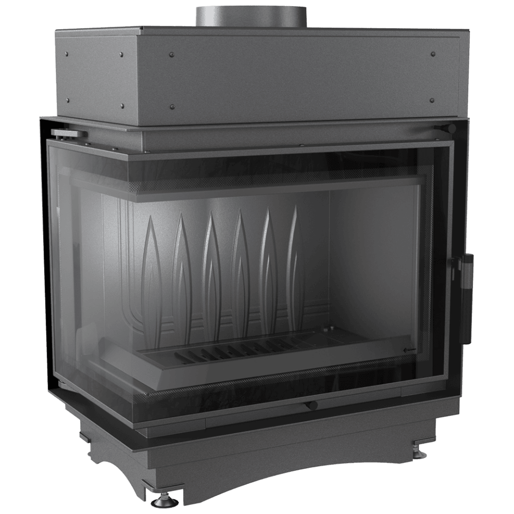 Дефлекторът удължава пътя на изгорелите газове, позволявайки изгарянето на горивните частици, значително увеличавайки ефективността на камината. Ръчното регулиране на тягата на комина се постига с помощта на вградената клапа. Освен това, ръчното управление на пепелника позволява още по-добро управление на горенето.
