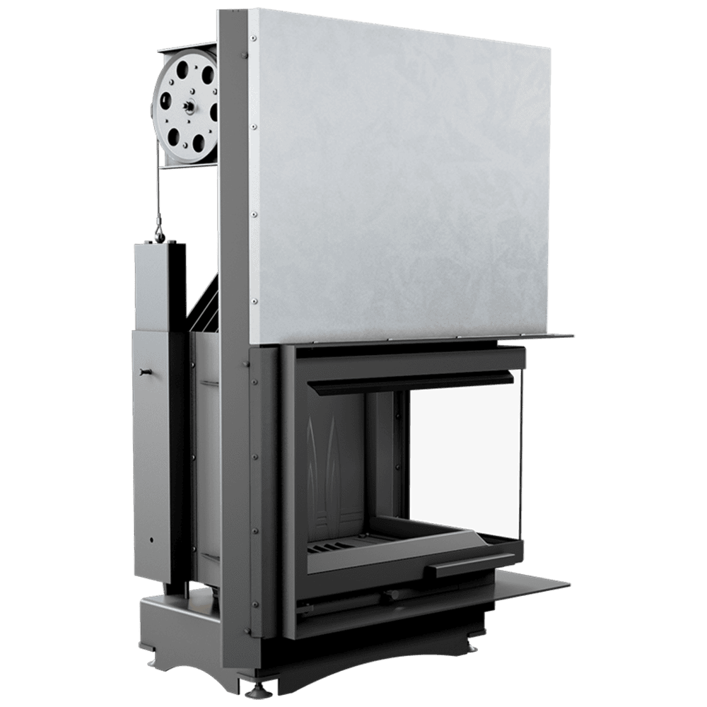 Дефлекторът удължава пътя на изгорелите газове, позволявайки изгарянето на горивните частици, значително увеличавайки ефективността на камината. Ръчното регулиране на тягата на комина се постига с помощта на вградената клапа. Освен това, ръчното управление на пепелника позволява още по-добро управление на горенето.