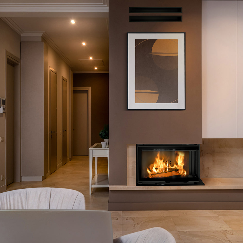 Максимална употреба на енергия, изработена от висококачествена стомана, устойчива на много високи температури. Ефективен процес на изгаряне и поддържане на температурата, за да се запази топлината за по -дълго благодарение на облицовката на горивната камера с термотек - топлинен натрупващ материал, който повишава температурата в горивната камера. Висока димоотводна и димна тръба, които са напречно разположени - увеличава площта на топлинната дозем между вложката и околната среда. Намаляването на температурата на газовите ауспуси помага да се повиши ефективността на устройството. Вратите на Fireplace, устойчиви на напрежение и стабилни благодарение на използването на затворен профил. Уплътненията на вратите, проектирани в профилиран канал, това, което гарантира правилното придържане и предпазва от изпадането на евантюал, докато работи. Изгаряне на горивни частици благодарение на дефлектора, който удължава пътя на отработените газове. Въздухът се доставя отвън само благодарение на Biult-in външен въздушен вход FI 125mm. Регулиране на въздуха само с един регулатор, който предотвратява неправилното използване. Тройна въздушна система на горивна камера: първичен въздух - насочен към плоча за горене; Вторичен въздух, доставен от дупките, разположени в задната стена. Освен това е приложена системата на чистото стъкло за въздух (въздух на завеса). Безопасност при най -високо ниво перфектна стегнатост благодарение на плътните заварки, направени в благороден газов екранинг. Всички стоманени елементи са лазерно изрязване и огънати на машините за огъване на ЦПУ. Предната част на вложката е оборудвана с топлоустойчива керамика, която може да издържи на температурите до 660oc. Екологично изгаряне Устройството отговаря на изискванията на стандартите за екодизайн и ограниченията на стандарта BIMSCHV 2, който определя максималната емисия на СО. Удобно за използване на безшевна камина вложка - пълно изгаряне на праха какво означава, че дърва за огрев изгаря в фина пепел с минимално количество. Получената топлинна енергия от дърва за огрев се използва максимално. Долната плоча на вложката е значително намалена спрямо вратата. Намалено отлагане на сажди чрез система от чисто стъкло (въздушна завеса). Специалният перфориран дизайн на дръжката предпазва от прекомерно отопление, което оказва влияние върху високия комфорт на използването на камината. Съвременният дизайн Вложка за камина с две пала, съставени помежду си под ъгли (без скоби). Декоративно, устойчиво на топлина стъкло, което може да издържи на температурите до 660 ° C. Той придава на камина модерен и елегантен вид, визуално увеличава предната част на вложката. Вратите са оборудвани с модерна дръжка.