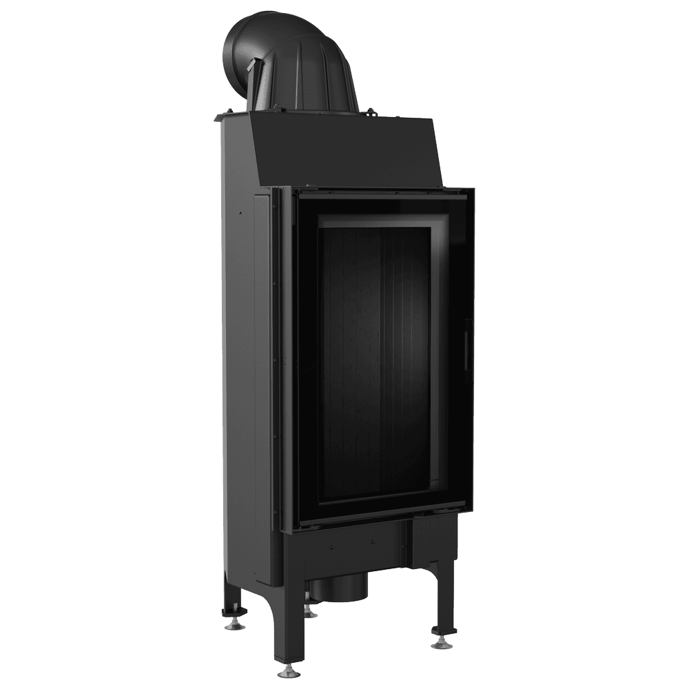 Освен това, камината е снабдена със система за чисто стъкло (въздушна завеса), което означава, че въздухът се подава директно към стъклото през система от канали, разположени отстрани на камината. Това доставя кислород до горната част на горивната камера, където се изгарят газовете, получени от горенето на дърва, което допълнително намалява вредните емисии на CO2 в атмосферата.