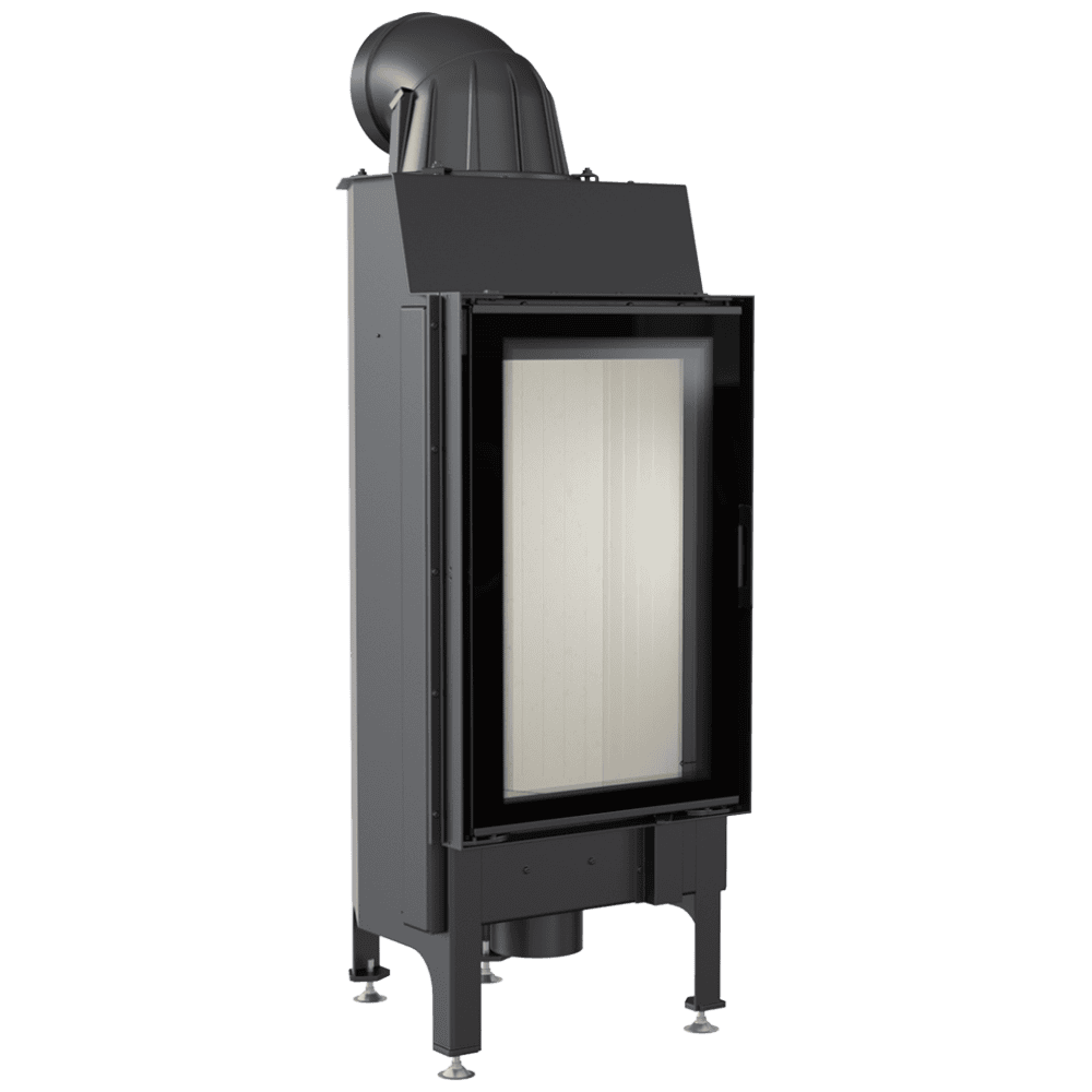 Освен това, камината е снабдена със система за чисто стъкло (въздушна завеса), което означава, че въздухът се подава директно към стъклото през система от канали, разположени отстрани на камината. Това доставя кислород до горната част на горивната камера, където се изгарят газовете, получени от горенето на дърва, което допълнително намалява вредните емисии на CO2 в атмосферата.