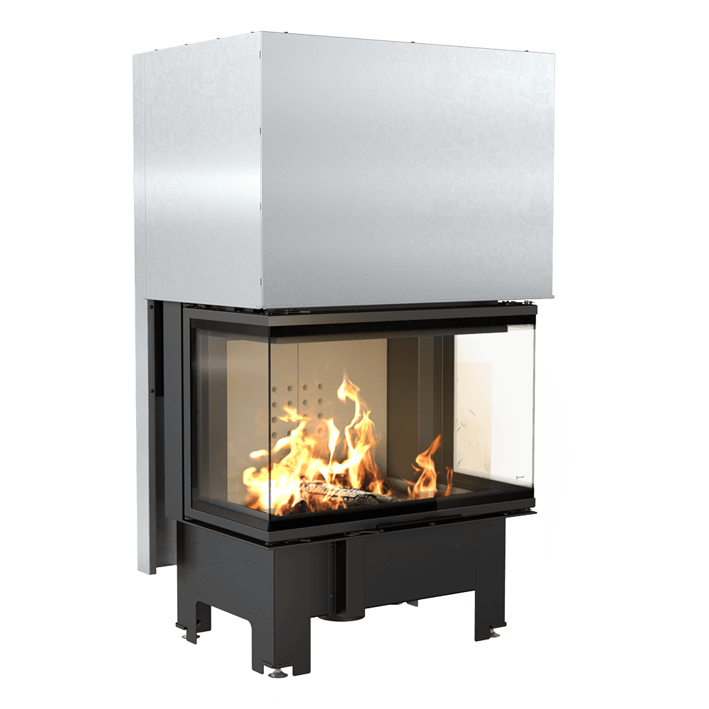 Тристранното остъкляване на камината гарантира максимална видимост към огъня.