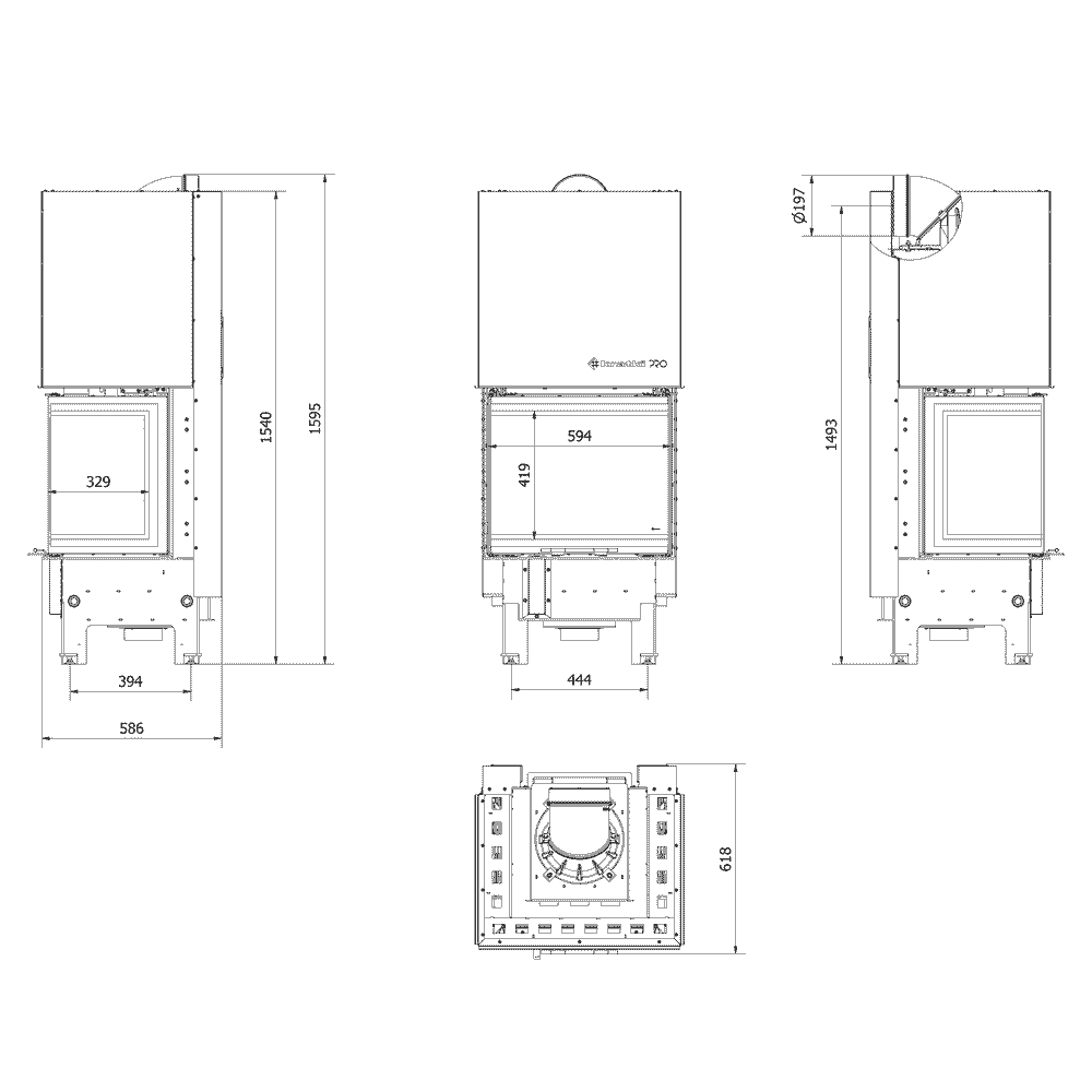 Горивна камера Kratki REGNOR/500/700 Ø 200 8 kW, Lift-up, Тристранна500x700Стоманен фронт с декоративно стъкло200тристранна гилотинаBlackНе8Вход за въздух - вграден, Декоративно стъкло, Пепелник, Облицовка на горивната камераwhite thermotec