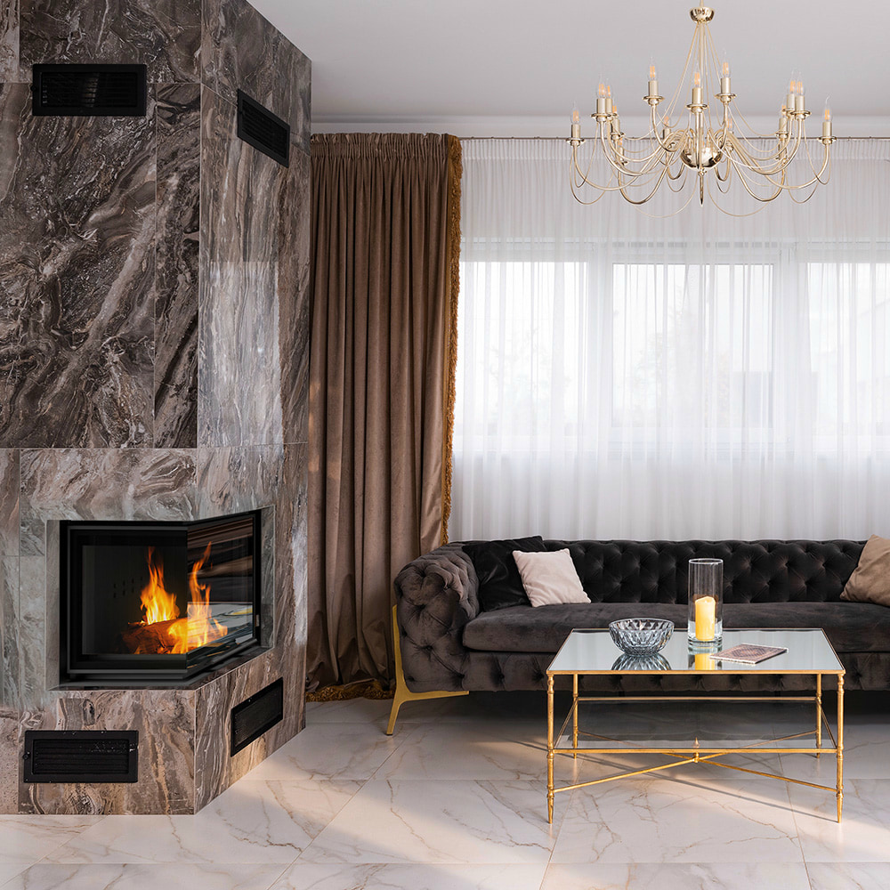 Вградената камина VN привлича вниманието с модерния си дизайн и естетическо покритие. Тя пленява с хармоничната си визия на огъня, придавайки на интериора уникален стил. Топлината се излъчва не само отпред, но и отстрани.