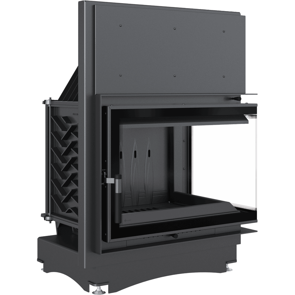 Модерният стоманен фронт на камината е оборудван с декоративна, топлоустойчива керамика, която може да издържи на температури до 660°C. Монтираното стъкло е сертифицирано за качество и безопасност. Декоративното стъкло не само изглежда елегантно и модерно, но преди всичко визуално уголемява фронта на камината и подчертава огъня. Касата на вратата е изработена от затворен профил, което я прави стабилна и устойчива на натоварванията, възникващи по време на работа при високи температури.