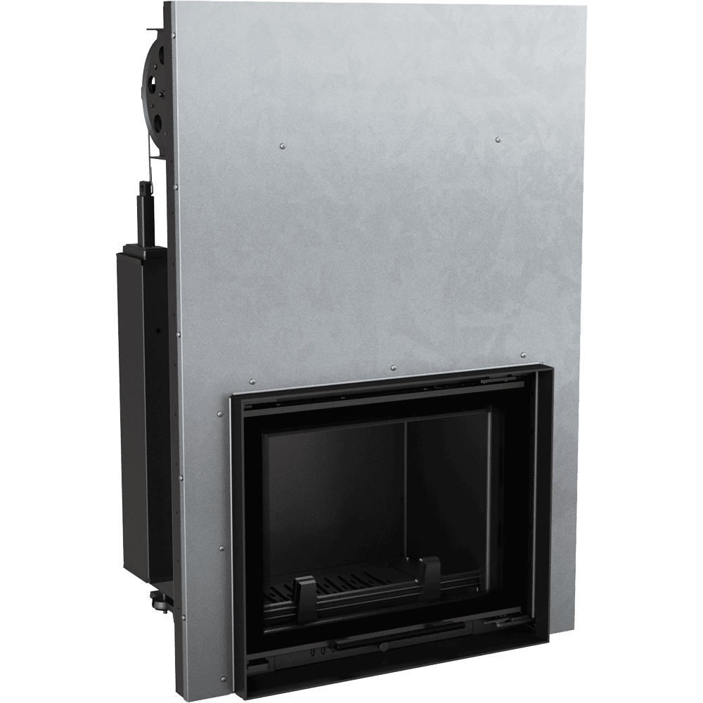 Двойна система за отваряне на вратата - повдигане нагоре (гилотина) и странично отваряне. Повдигащата се врата улеснява зареждането на дърва, а механизмът на странично отваряне на вратата позволява почистване на стъклото.