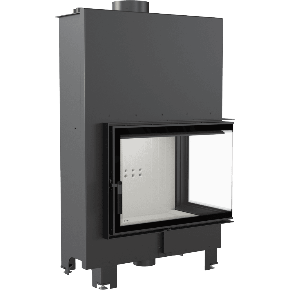 Освен това, има система за чисто стъкло (въздушна завеса), което означава, че въздухът се подава директно към стъклото през канална система, разположена отстрани на камината. По този начин въздухът се подава към горната част на горивната камера, където се изгарят газовете, получени от процеса на горене на дърва, което допълнително ограничава емисиите на CO2 в атмосферата.