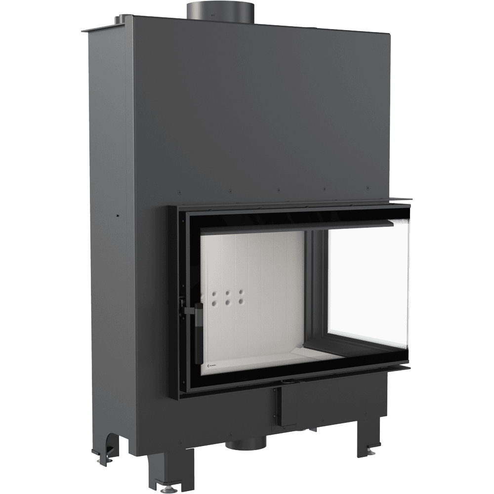 Освен това, има система за чисто стъкло (въздушна завеса), което означава, че въздухът се подава директно към стъклото през канална система, разположена отстрани на камината. По този начин въздухът се подава към горната част на горивната камера, където се изгарят газовете, получени от процеса на горене на дърва, което допълнително ограничава емисиите на CO2 в атмосферата.