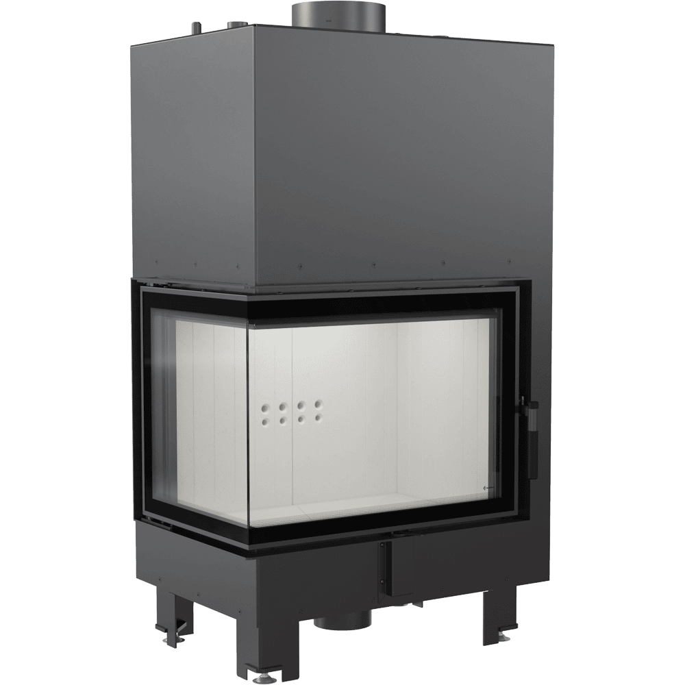 Освен това, има система за чисто стъкло (въздушна завеса), което означава, че въздухът се подава директно към стъклото през канална система, разположена отстрани на камината. По този начин въздухът се подава към горната част на горивната камера, където се изгарят газовете, получени от процеса на горене на дърва, което допълнително ограничава емисиите на CO2 в атмосферата.