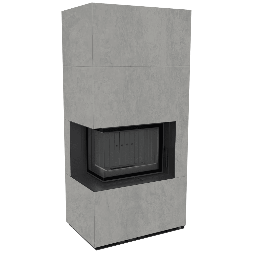 Модулна камина Kratki FLOKI/S/L/BLACK/Q/C/G/B Ø 160 8 kW, Синтерован кварц, Cemento Grigio, ъглова лява, black thermotecСтоманен фронт с декоративно стъкло160ъглова ляваCemento GrigioНе8Вход за въздух - вграден, Декоративно стъкло, Пепелник, Облицовка на горивната камераblack thermotec