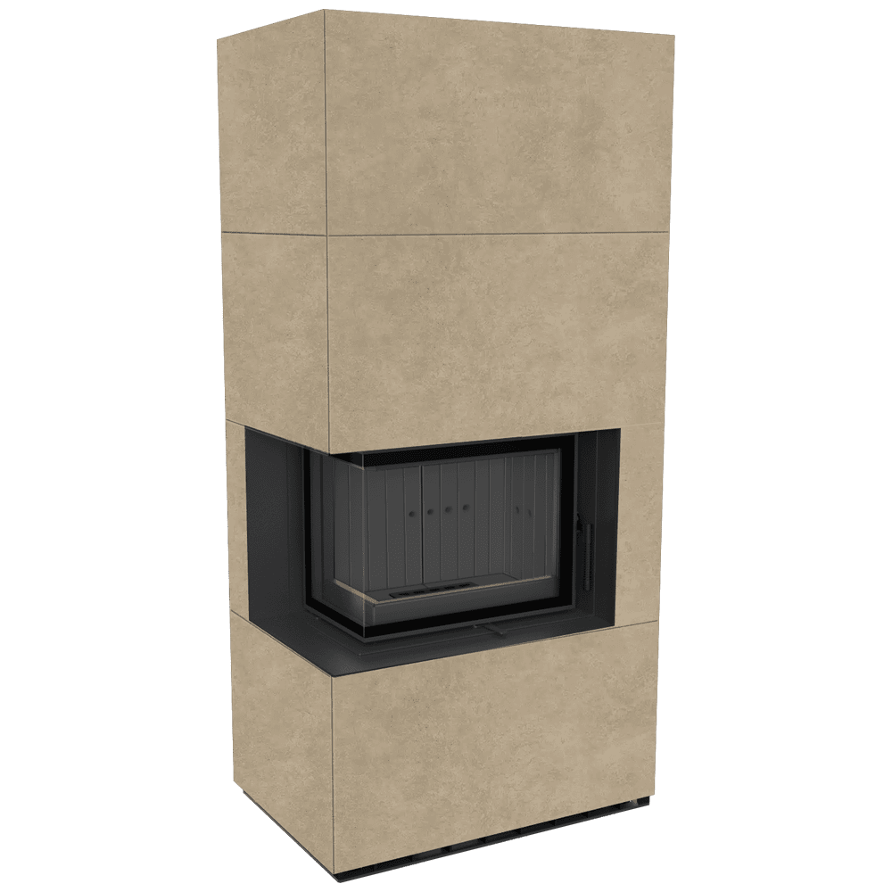 Модулна камина Kratki FLOKI/S/L/BLACK/Q/N/P/D/S/G Ø 160 8 kW, Синтерован кварц, Pietra di Savoia Grigia, ъглова лява, black thermotecСтоманен фронт с декоративно стъкло160ъглова ляваPietra di Savoia GrigiaНе8Вход за въздух - вграден, Декоративно стъкло, Пепелник, Облицовка на горивната камераblack thermotec