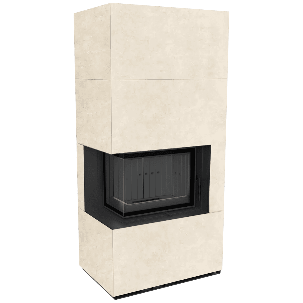 Модулна камина Kratki FLOKI/S/L/BLACK/Q/N/P/D/S/G Ø 160 8 kW, Синтерован кварц, Pietra di Savoia Grigia, ъглова лява, black thermotecСтоманен фронт с декоративно стъкло160ъглова ляваPietra di Savoia GrigiaНе8Вход за въздух - вграден, Декоративно стъкло, Пепелник, Облицовка на горивната камераblack thermotec