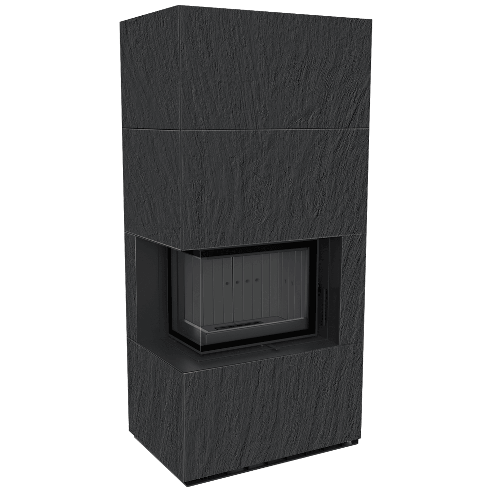 Модулна камина Kratki FLOKI/S/L/BLACK/Q/N/A/N Ø 160 8 kW, Синтерован кварц, Ardesia Nero A Spacco, ъглова лява, black thermotec