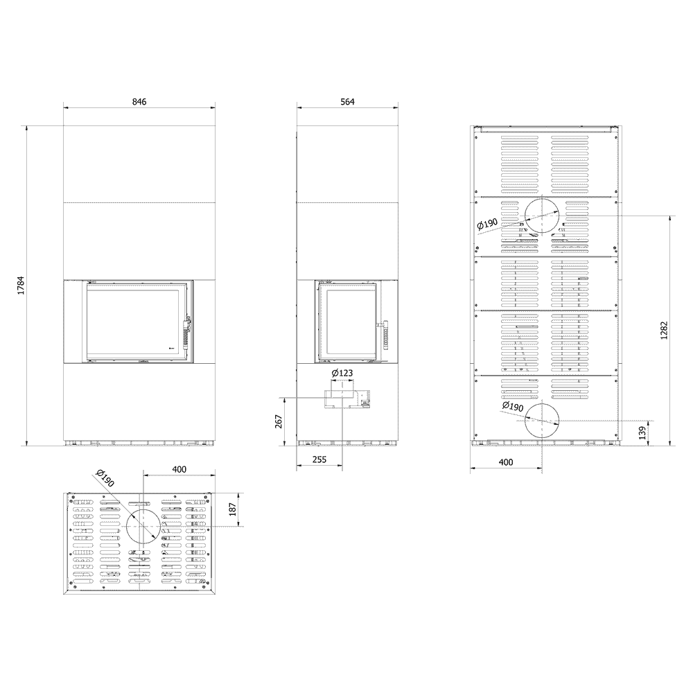 Модулна камина Kratki FLOKI/S/PF/Q/N/G Ø 160 8 kW, Синтерован кварц, Nero Greco, ФронталнаСтоманен фронт с декоративно стъкло160фронталнаNero GrecoНе8Вход за въздух - вграден, Декоративно стъкло, Пепелник, Облицовка на горивната камераwhite thermotec