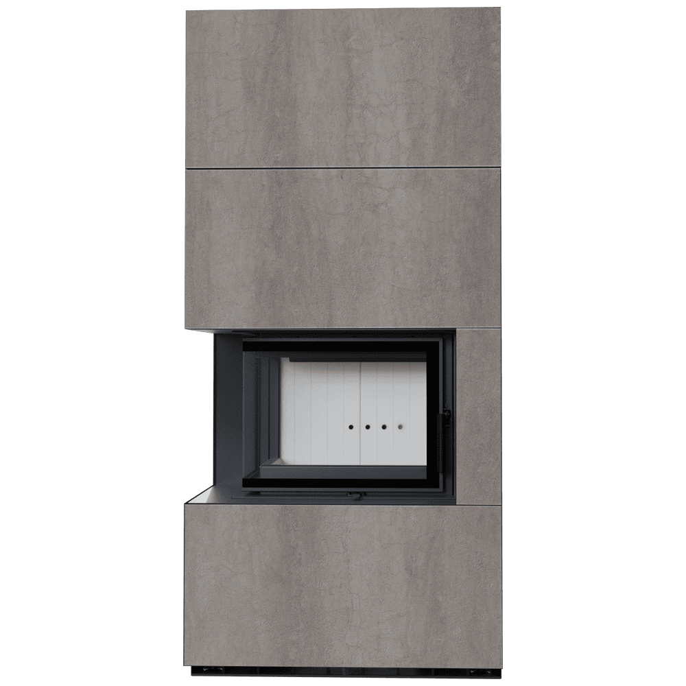 Модулна камина Kratki FLOKI/S/L/Q/C/G/B/BA1 Ø 160 8 kW, самозатваряща се, Синтерован кварц, Cemento Grigio, ъглова ляваSize SСтоманен фронт с декоративно стъкло160ъглова ляваCemento GrigioДа8Вход за въздух - вграден, Декоративно стъкло, Пепелник, Облицовка на горивната камераwhite thermotec