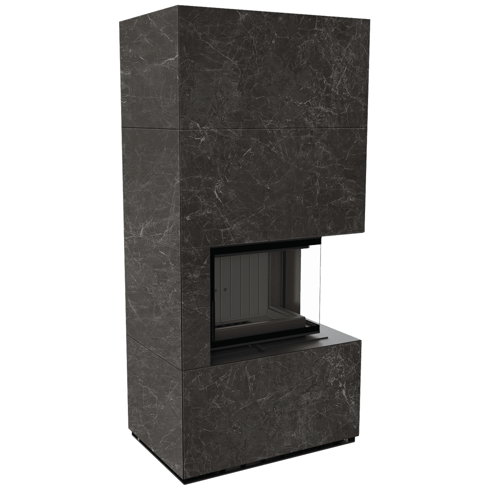 Модулна камина Kratki FLOKI/S/P/BLACK/Q/N/G Ø 160 8 kW, Синтерован кварц, Nero Greco, ъглова дясна, black thermotec