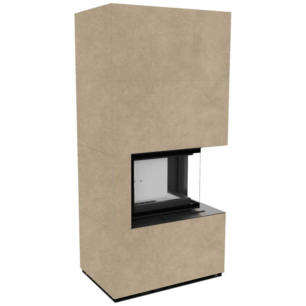 Модулна камина Kratki FLOKI/S/P/Q/F/R Ø 160 8 kW, Синтерован кварц, Ren's Focus, ъглова дясна