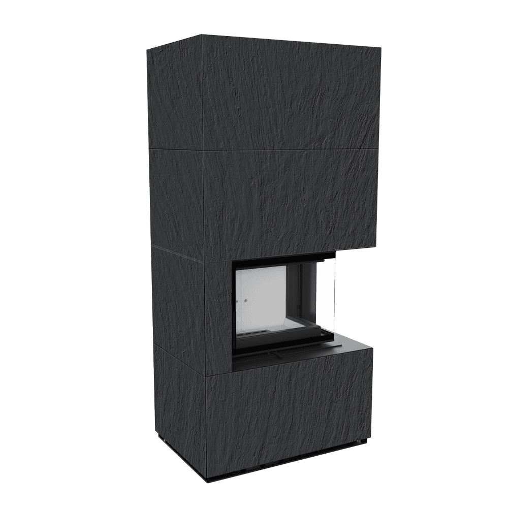 Модулна камина Kratki FLOKI/S/P/Q/N/A/N Ø 160 8 kW, Синтерован кварц, Ardesia Nero A Spacco, ъглова дясна