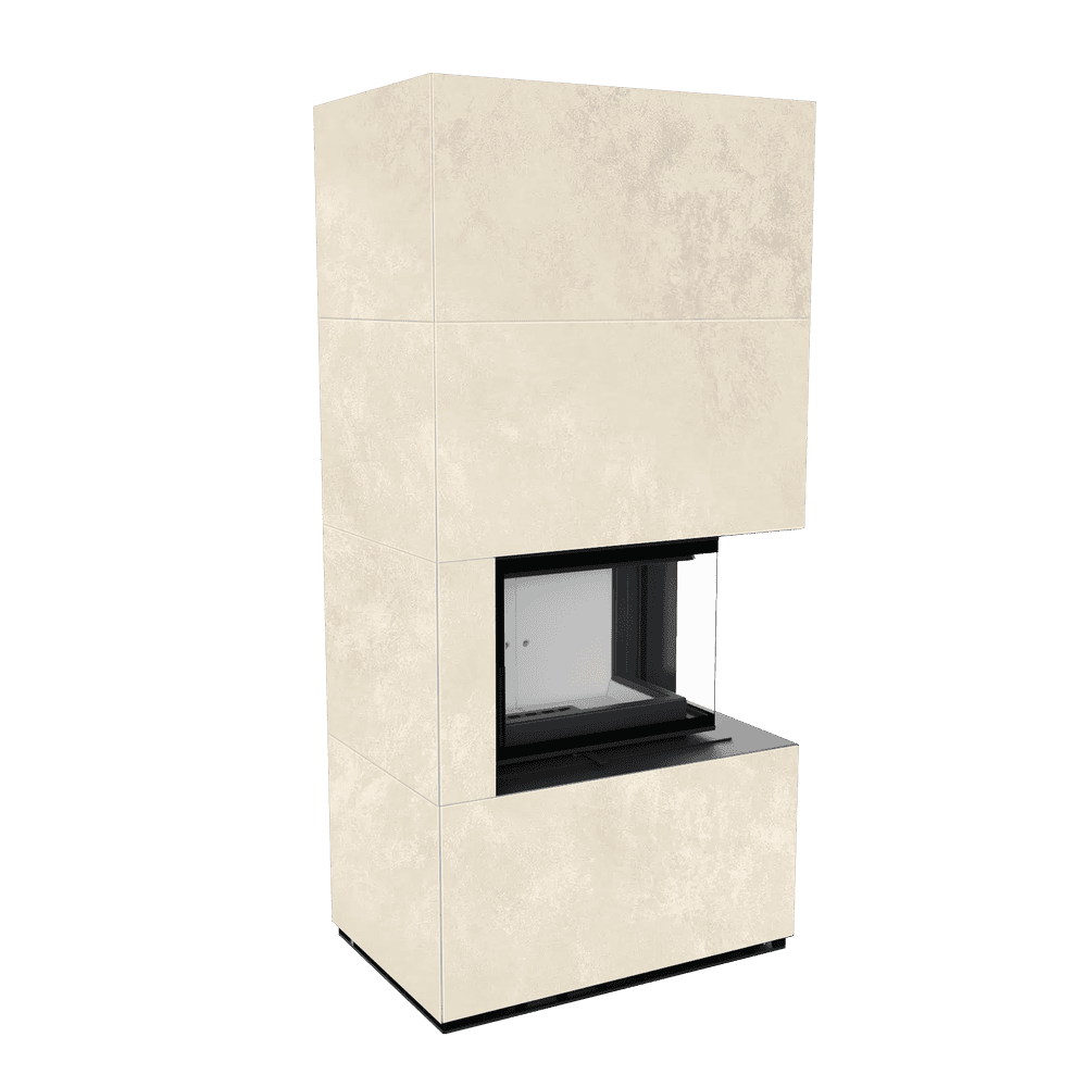 Модулна камина Kratki FLOKI/S/P/Q/O/B Ø 160 8 kW, Синтерован кварц, Oxide Bianco, ъглова дясна