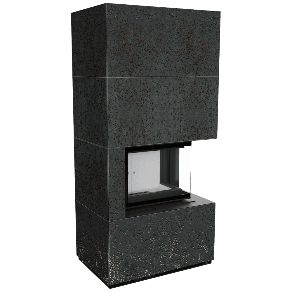 Модулна камина Kratki FLOKI/S/P/Q/O/N Ø 160 8 kW, Синтерован кварц, Oxide nero, ъглова дясна