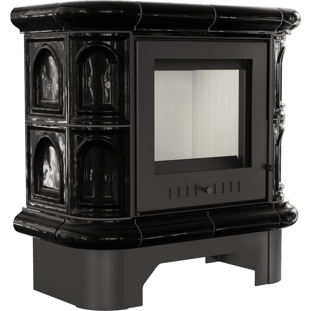 Дизайн, препращащ към ретро стил - гланцирани плочки. Обшивката от плочки осигурява продължително отвеждане на топлината, което осигурява допълнителен източник на топлина след изгасване.