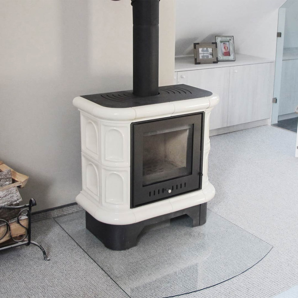 Дизайн, препращащ към ретро стил - гланцирани плочки. Обшивката от плочки осигурява продължително отвеждане на топлината, което осигурява допълнителен източник на топлина след изгасване.