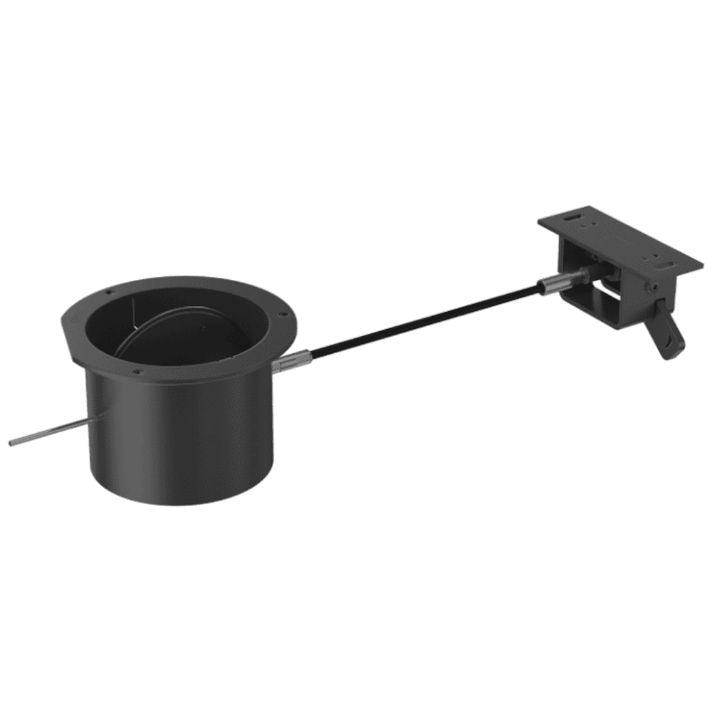 Външен регулатор на въздуха за свободно стопанин AB и печка AB S (с изключение на модели печка AB S/N). Ермиран ръчен амортисьор Ø100 с дърпащ прът (кабел), монтиран на входа на въздуха отвън. Използва се за регулиране на количеството въздух, доставен към горивната камера.