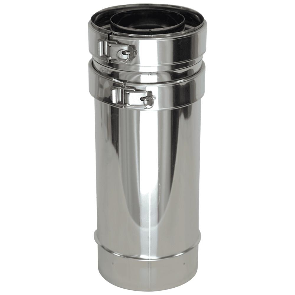 Въздушната тръба с двойна стена на концентрична система, изработена от устойчива на киселина ламарина, е проектирана за отстраняване на изпарения от устройства с газ. Bi-Gas е избрана и хидравлично оптимизирана солюция, която също има самопочистващи се свойства. Системата работи под вакуум (тя не е оборудвана с уплътнения). Характеристика: - Диаметър: 130/200 mm - Дължина: Регулируем в диапазона от 390-640 mm - Монтаж: само хоризонтален сглобяване - Температурно съпротивление: 600 ° C - оборудван с закрепващи скоби - тествани в Ceric - Материал: Неръждаема стомана (Austenitic) 1.4404 вътре, (316L, L50), 1.4301 ЕКСТРАНСКИ L204.
