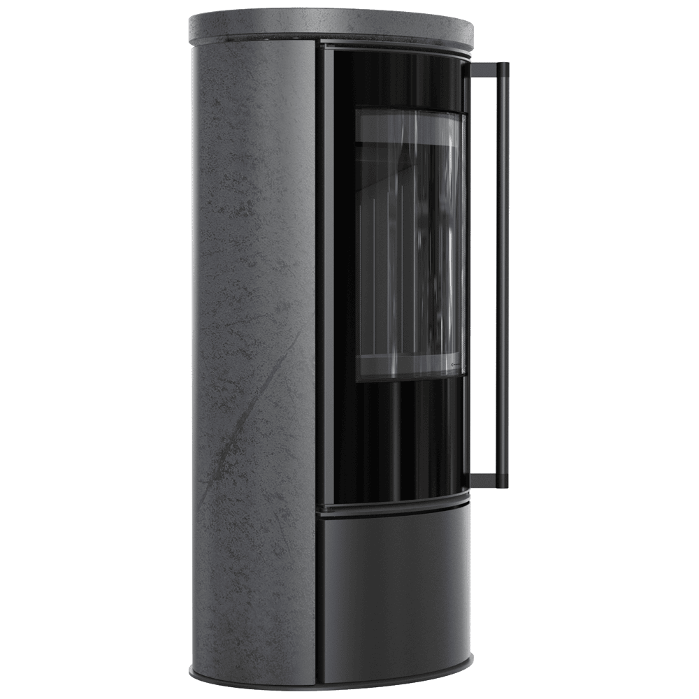 Стоманена печка на дърва Kratki ERIK/GFS/P/BLACK Ø 150 5.5 kW, декоративна керамика Grafite Satin, black thermotec, Керамичен капак, Черна стоманена дръжка