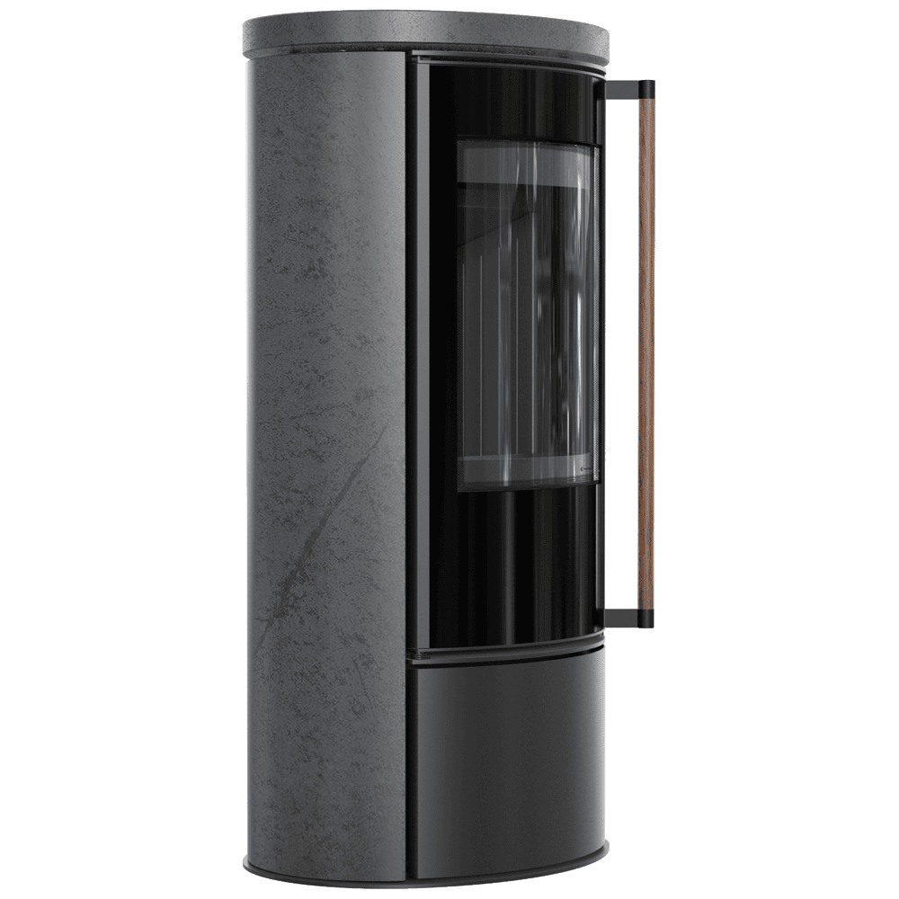 Стоманена печка на дърва Kratki ERIK/GFS/P/BLACK/KDJ/BA1 Ø 150 5.5 kW, декоративна керамика Grafite Satin, black thermotec, Керамичен капак, Дръжка от екзотично дърво Jatoba, самозатваряща се