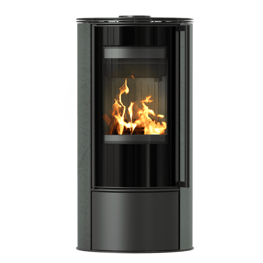 Стоманена печка на дърва Kratki ERIK/SPT/BLACK/BA1 Ø 150 5.5 kW, декоративна керамика Serpentino, black thermotec, стоманен капак, Черна стоманена дръжка, самозатваряща се