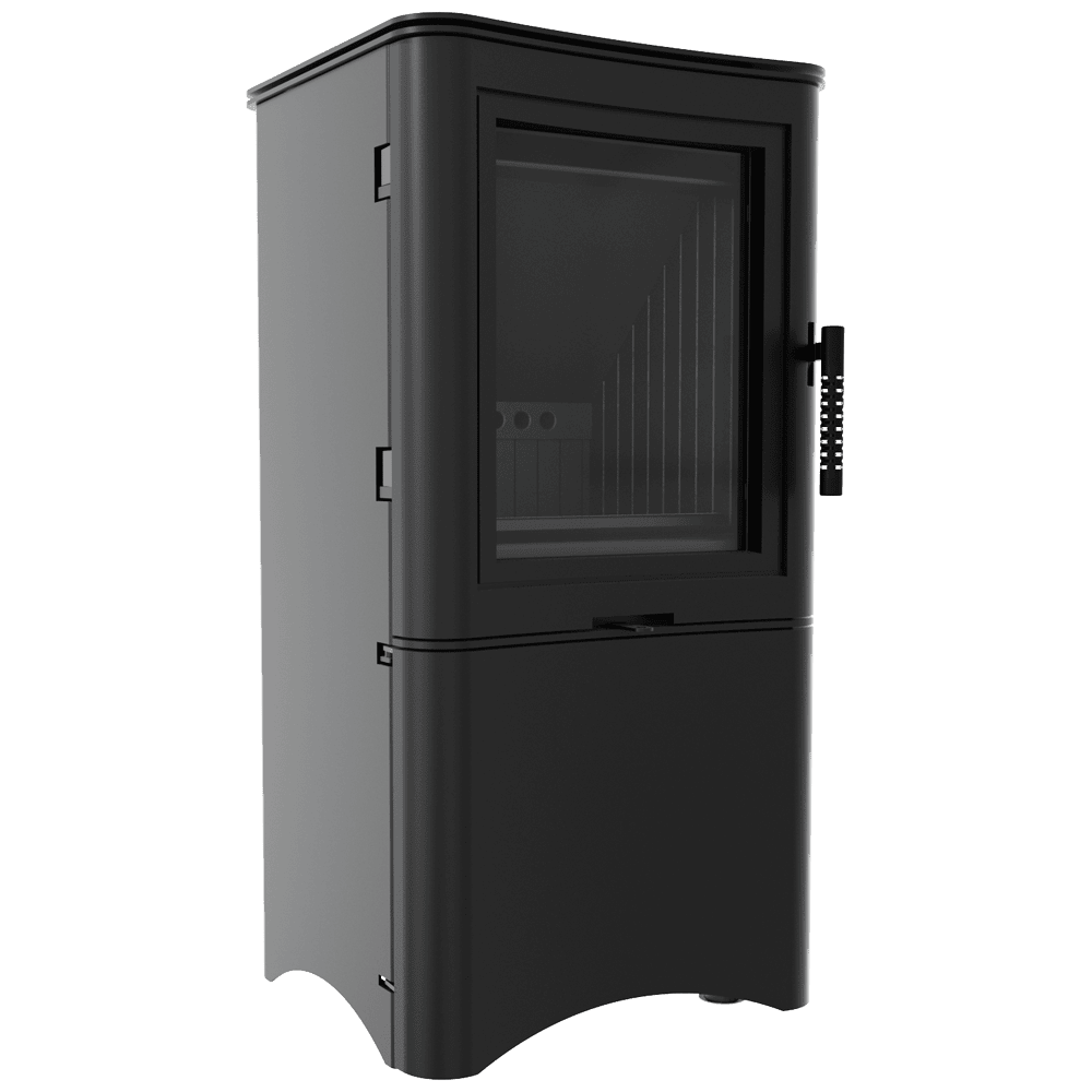 Стоманена печка на дърва Kratki KOZA/K5/S/W/D/BLACK Ø 150 7 kW, с ниша за дърва, самозатваряща се, black thermotec