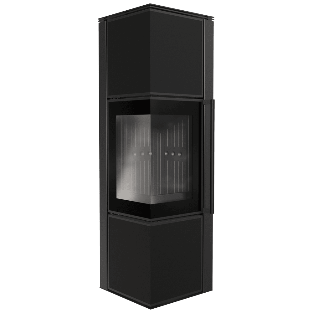 TORA е модерна стоманена печка на дърва със синтерован кварцов плот в елегантен цвят Nero Assoluto и двустранно остъкляване. Разполага с ъглова врата, украсена с черно остъкляване, за да се подобри гледката към огъня. Печката е снабдена с удобна дръжка за отваряне на вратата. Тази печка предлага комфорт и безопасност при употреба, като същевременно запазва модерен дизайн.