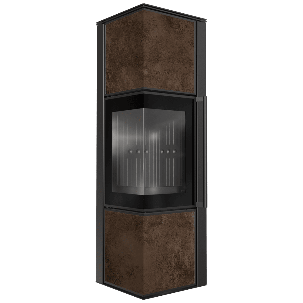 TORA е модерна стоманена печка на дърва със синтерован кварцов плот в елегантен цвят Nero Assoluto и двустранно остъкляване. Разполага с ъглова врата, украсена с черно остъкляване, за да се подобри гледката към огъня. Печката е снабдена с удобна дръжка за отваряне на вратата. Тази печка предлага комфорт и безопасност при употреба, като същевременно запазва модерен дизайн.