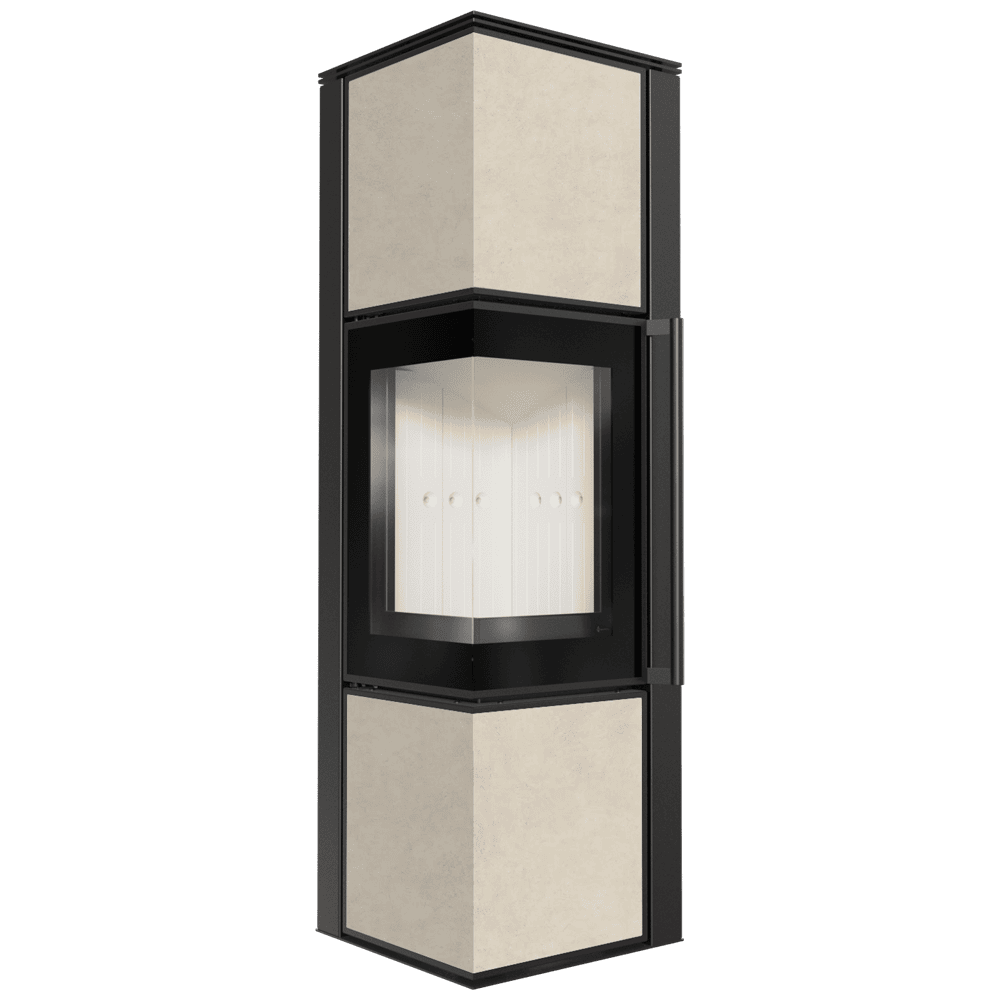 TORA е модерна стоманена печка на дърва със синтерован кварцов плот в елегантен цвят Nero Assoluto и двустранно остъкляване. Разполага с ъглова врата, украсена с черно остъкляване, за да се подобри гледката към огъня. Печката е снабдена с удобна дръжка за отваряне на вратата. Тази печка предлага комфорт и безопасност при употреба, като същевременно запазва модерен дизайн.