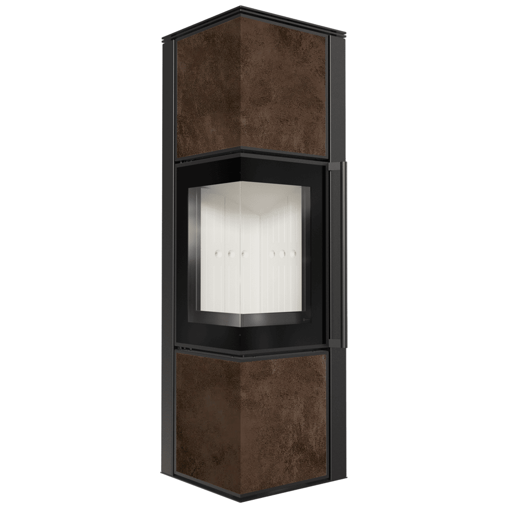 TORA е модерна стоманена печка на дърва със синтерован кварцов плот в елегантен цвят Nero Assoluto и двустранно остъкляване. Разполага с ъглова врата, украсена с черно остъкляване, за да се подобри гледката към огъня. Печката е снабдена с удобна дръжка за отваряне на вратата. Тази печка предлага комфорт и безопасност при употреба, като същевременно запазва модерен дизайн.