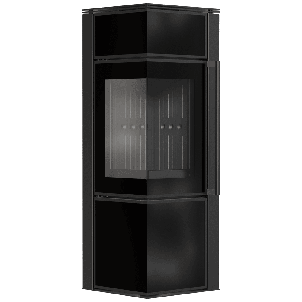 TORA е модерна стоманена печка на дърва със синтерован кварцов плот в елегантен цвят Nero Assoluto и двустранно остъкляване. Разполага с ъглова врата, украсена с черно остъкляване, за да се подобри гледката към огъня. Печката е снабдена с удобна дръжка за отваряне на вратата. Тази печка предлага комфорт и безопасност при употреба, като същевременно запазва модерен дизайн.