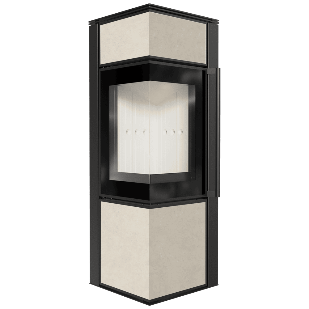 TORA е модерна стоманена печка на дърва със синтерован кварцов плот в елегантен цвят Nero Assoluto и двустранно остъкляване. Разполага с ъглова врата, украсена с черно остъкляване, за да се подобри гледката към огъня. Печката е снабдена с удобна дръжка за отваряне на вратата. Тази печка предлага комфорт и безопасност при употреба, като същевременно запазва модерен дизайн.