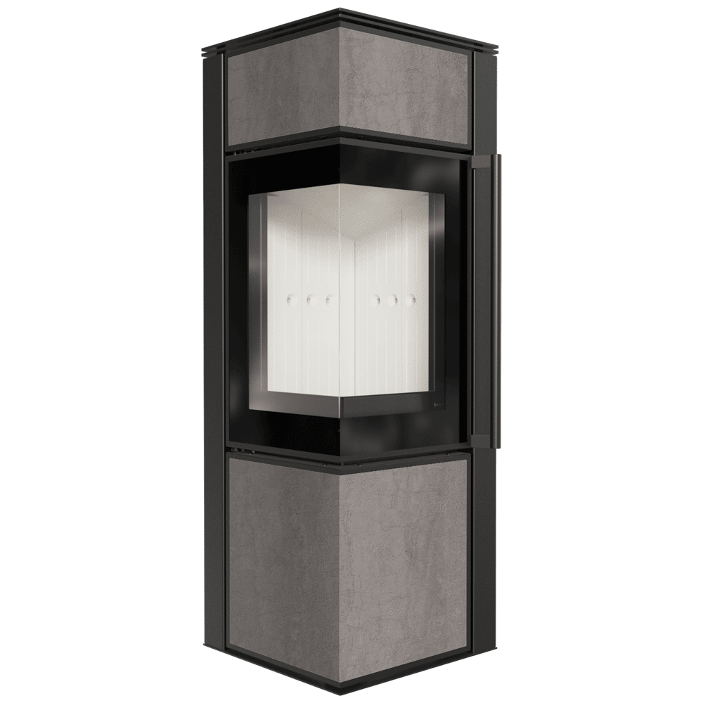 Стоманена печка на дърва Kratki TORA/S/BLACK/Q/N/P/D/S/G Ø 150 8 kW, с кварцов синтер NATURALI PIETRA DI SAVOIA GRIGIA BOCCIARDATA, black thermotecSize SСтоманен фронт с керамично стъкло150ъглова дяснаPietra di Savoia GrigiaНе8Вход за въздух - вграден, пепелник, облицовка на горивната камера, декоративно стъклоblack thermotec